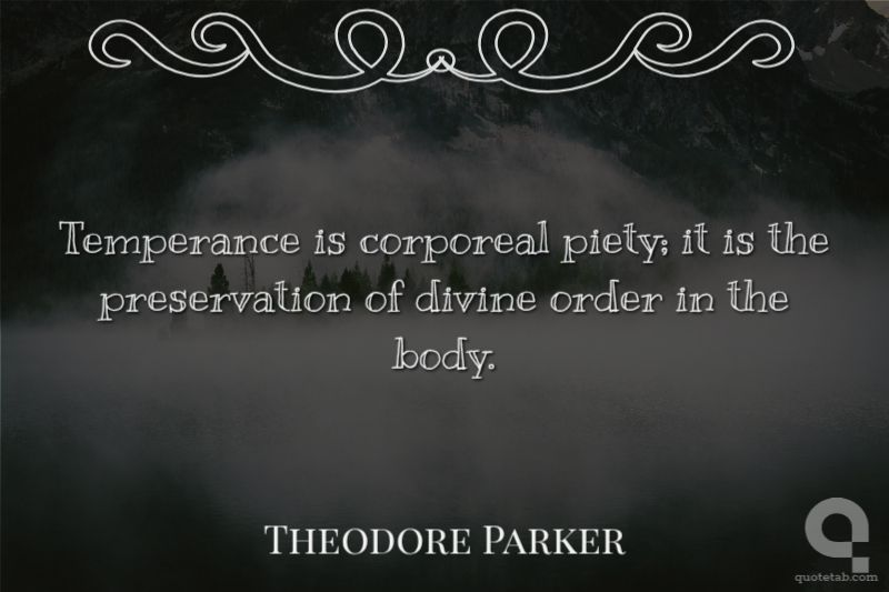 Temperance is corporeal piety; it is the preservation of divine order in the body.
