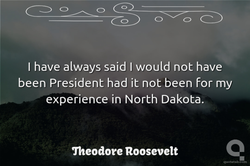 I have always said I would not have been President had it not been for my experience in North Dakota.