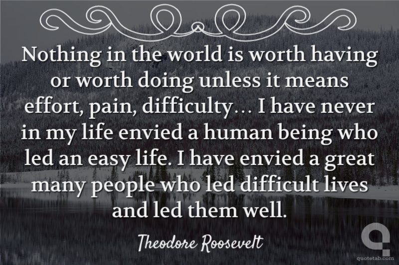 Nothing in the world is worth having or worth doing unless it means effort, pain, difficulty… I have never in my life envied a human being who led an easy life. I have envied a great many people who led difficult lives and led them well.