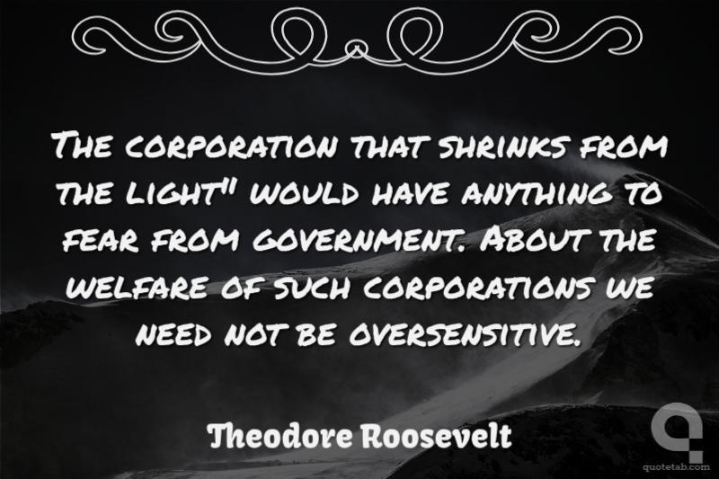 The fortunes amassed through corporate organization are now so large, and vest such power in those that wield them, as to make it a matter of necessity to give to the sovereign - that is, to the Government, which represents the people as a whole - some effective power of supervision over their corporate use. In order to insure a healthy social and industrial life, every big corporation should be held responsible by, and be accountable to, some sovereign strong enough to control its conduct.
