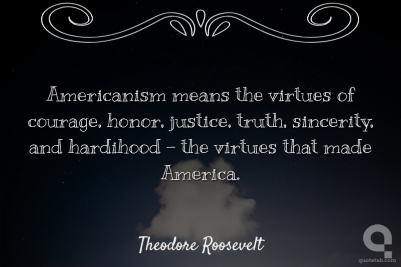 Americanism means the virtues of courage, honor, justice, truth, sincerity, and hardihood - the virtues that made America.