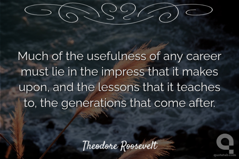 Much of the usefulness of any career must lie in the impress that it makes upon, and the lessons that it teaches to, the generations that come after.