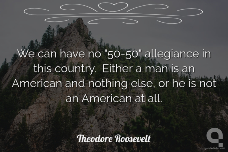 We can have no "50-50" allegiance in this country. Either a man is an American and nothing else, or he is not an American at all.