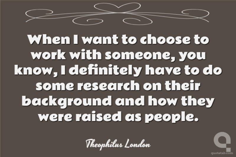 When I want to choose to work with someone, you know, I definitely have to do some research on their background and how they were raised as people.