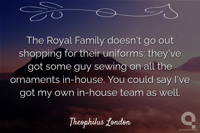 The Royal Family doesn't go out shopping for their uniforms: they've got some guy sewing on all the ornaments in-house. You could say I've got my own in-house team as well.