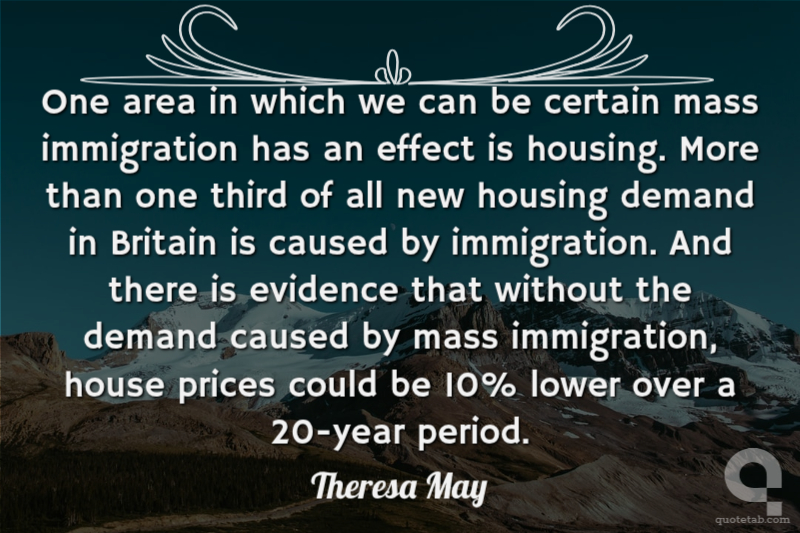 One area in which we can be certain mass immigration has an effect is housing. More than one third of all new housing demand in Britain is caused by immigration. And there is evidence that without the demand caused by mass immigration, house prices could be 10% lower over a 20-year period.
