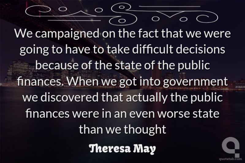 We campaigned on the fact that we were going to have to take difficult decisions because of the state of the public finances. When we got into government we discovered that actually the public finances were in an even worse state than we thought