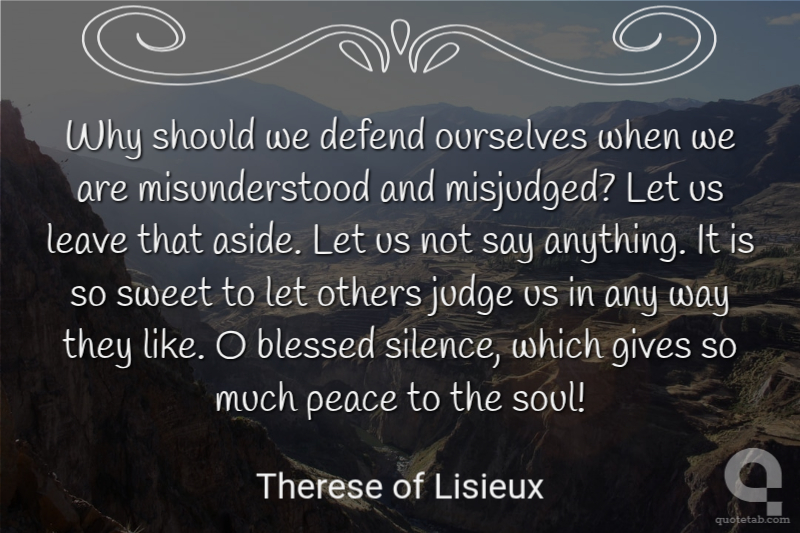 Why should we defend ourselves when we are misunderstood and misjudged? Let us leave that aside. Let us not say anything. It is so sweet to let others judge us in any way they like. O blessed silence, which gives so much peace to the soul!