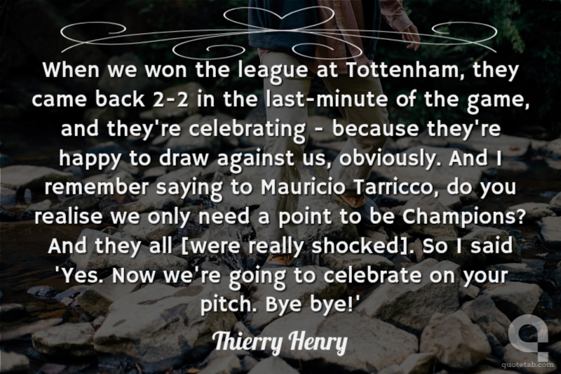 When we won the league at Tottenham, they came back 2-2 in the last-minute of the game, and they're celebrating - because they're happy to draw against us, obviously. And I remember saying to Mauricio Tarricco, do you realise we only need a point to be Champions? And they all [were really shocked]. So I said 'Yes. Now we're going to celebrate on your pitch. Bye bye!'