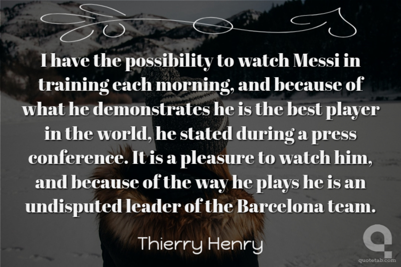 I have the possibility to watch Messi in training each morning, and because of what he demonstrates he is the best player in the world, he stated during a press conference. It is a pleasure to watch him, and because of the way he plays he is an undisputed leader of the Barcelona team.