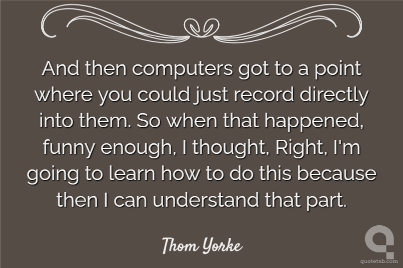 And then computers got to a point where you could just record directly into them. So when that happened, funny enough, I thought, Right, I'm going to learn how to do this because then I can understand that part.