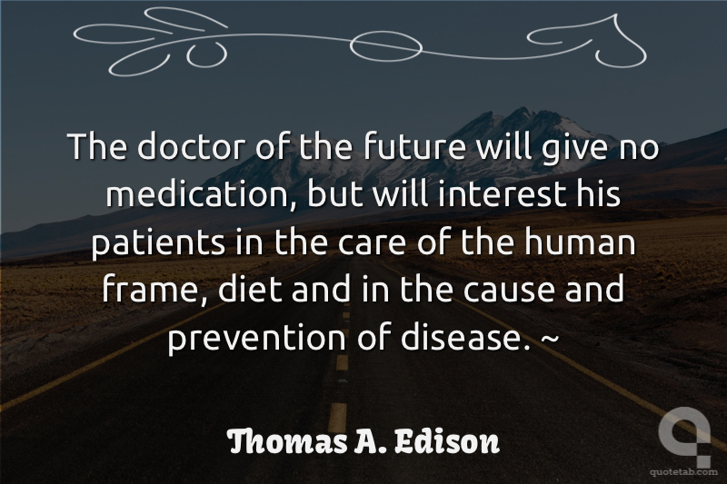 The doctor of the future will give no medication, but will interest his patients in the care of the human frame, diet and in the cause and prevention of disease. ~
