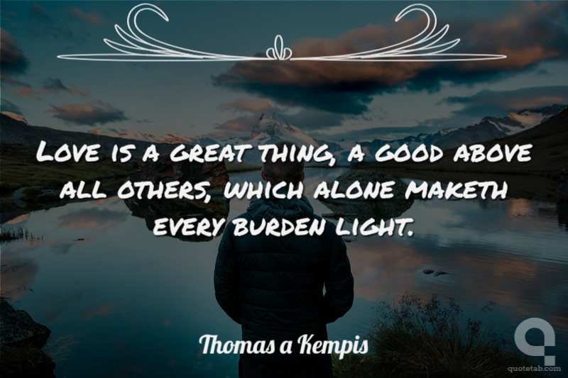 Love is a great thing, a good above all others, which alone maketh every burden light.