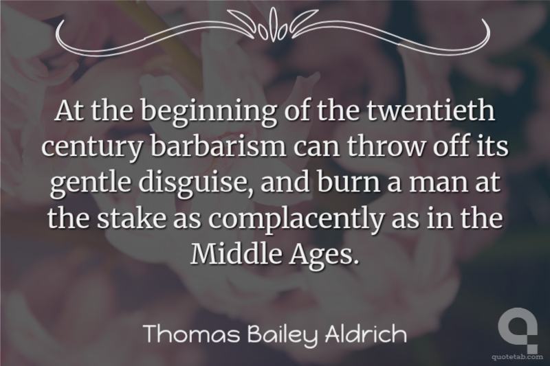 At the beginning of the twentieth century barbarism can throw off its gentle disguise, and burn a man at the stake as complacently as in the Middle Ages.