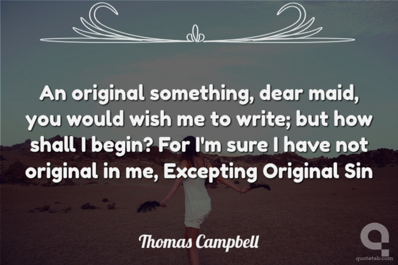 An original something, dear maid, you would wish me to write; but how shall I begin? For I'm sure I have not original in me, Excepting Original Sin