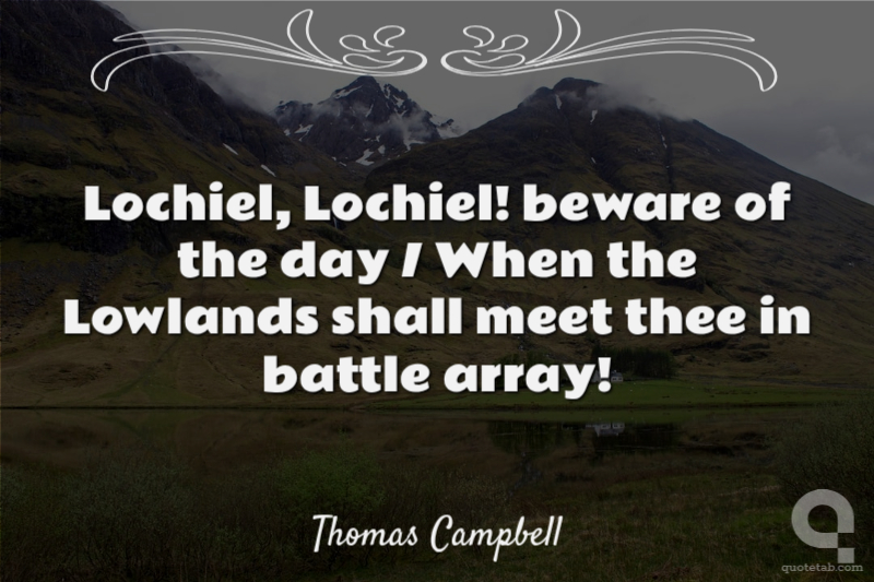 Lochiel, Lochiel! beware of the day / When the Lowlands shall meet thee in battle array!