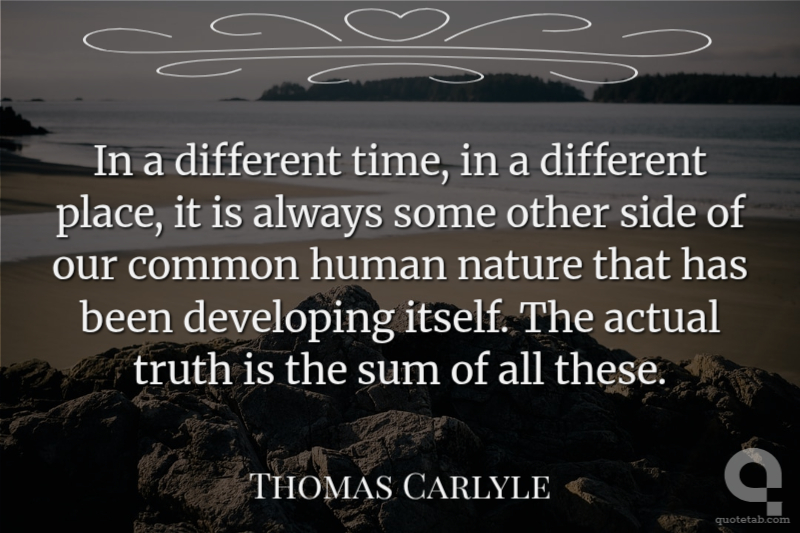 In a different time, in a different place, it is always some other side of our common human nature that has been developing itself. The actual truth is the sum of all these.