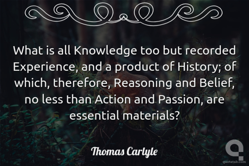 What is all Knowledge too but recorded Experience, and a product of History; of which, therefore, Reasoning and Belief, no less than Action and Passion, are essential materials?
