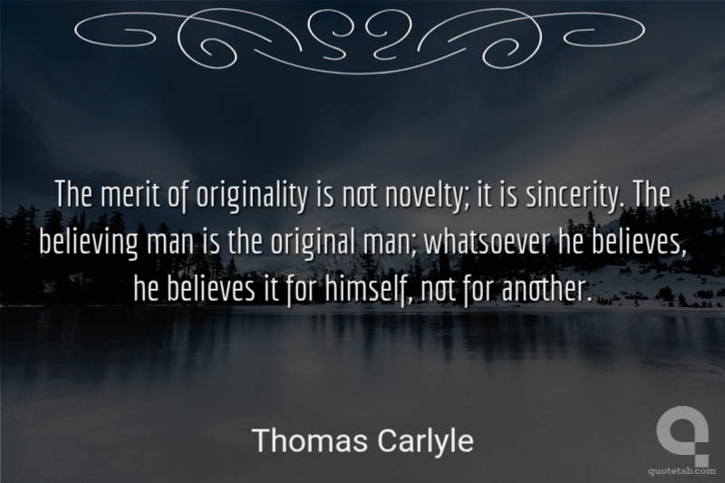The merit of originality is not novelty; it is sincerity. The believing man is the original man; whatsoever he believes, he believes it for himself, not for another.