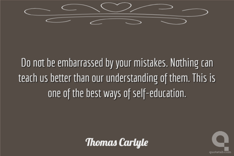 Do not be embarrassed by your mistakes. Nothing can teach us better than our understanding of them. This is one of the best ways of self-education.