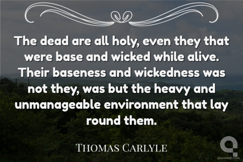 The dead are all holy, even they that were base and wicked while alive. Their baseness and wickedness was not they, was but the heavy and unmanageable environment that lay round them.