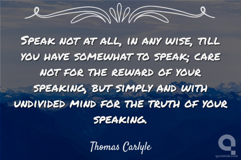 Speak not at all, in any wise, till you have somewhat to speak; care not for the reward of your speaking, but simply and with undivided mind for the truth of your speaking.