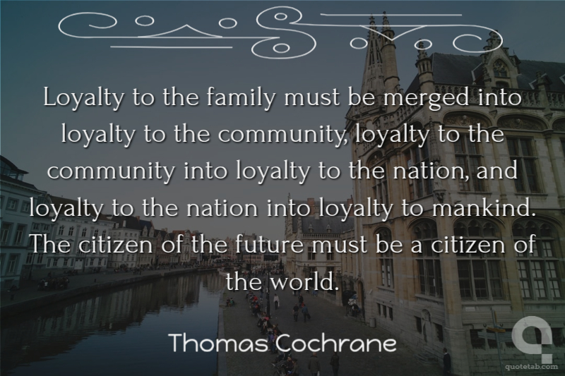 Loyalty to the family must be merged into loyalty to the community, loyalty to the community into loyalty to the nation, and loyalty to the nation into loyalty to mankind. The citizen of the future must be a citizen of the world.