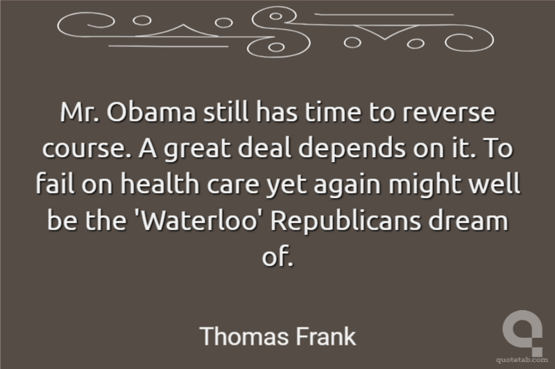 Mr. Obama still has time to reverse course. A great deal depends on it. To fail on health care yet again might well be the 'Waterloo' Republicans dream of.