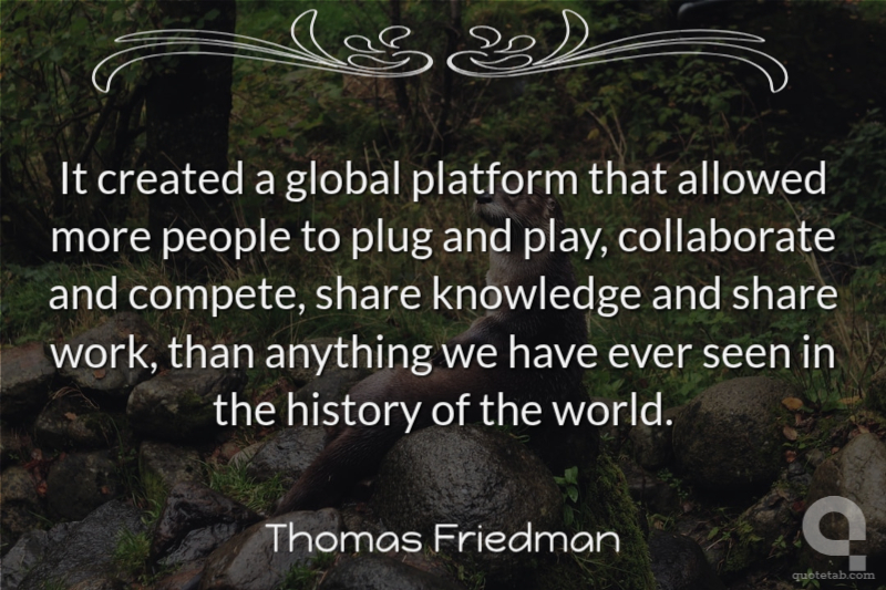 It created a global platform that allowed more people to plug and play, collaborate and compete, share knowledge and share work, than anything we have ever seen in the history of the world.