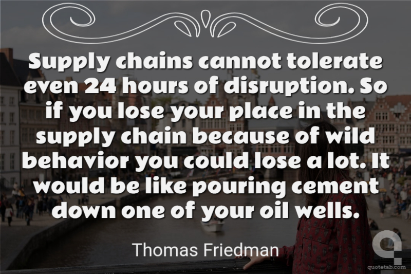 Supply chains cannot tolerate even 24 hours of disruption. So if you lose your place in the supply chain because of wild behavior you could lose a lot. It would be like pouring cement down one of your oil wells.