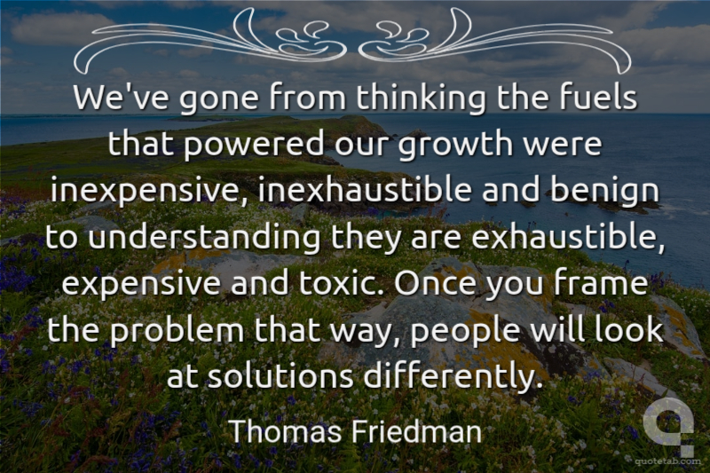 We've gone from thinking the fuels that powered our growth were inexpensive, inexhaustible and benign to understanding they are exhaustible, expensive and toxic. Once you frame the problem that way, people will look at solutions differently.
