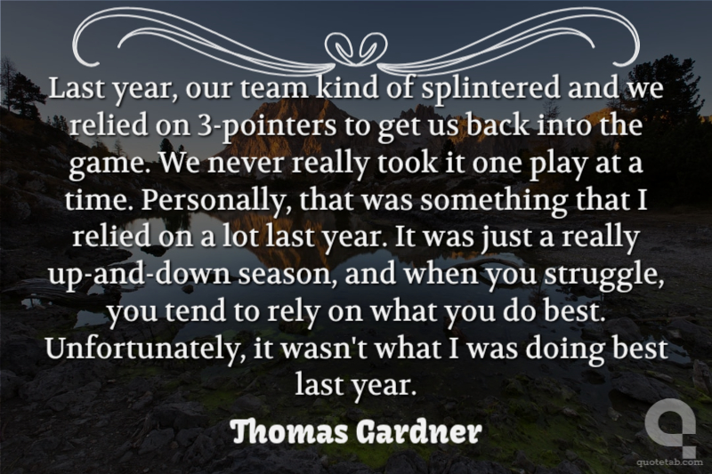 Last year, our team kind of splintered and we relied on 3-pointers to get us back into the game. We never really took it one play at a time. Personally, that was something that I relied on a lot last year. It was just a really up-and-down season, and when you struggle, you tend to rely on what you do best. Unfortunately, it wasn't what I was doing best last year.