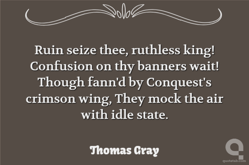 Ruin seize thee, ruthless king! Confusion on thy banners wait! Though fann'd by Conquest's crimson wing, They mock the air with idle state.