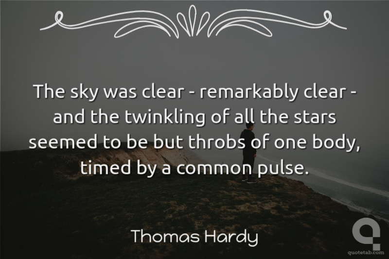 The sky was clear - remarkably clear - and the twinkling of all the stars seemed to be but throbs of one body, timed by a common pulse.