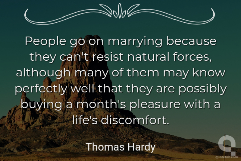 People go on marrying because they can't resist natural forces, although many of them may know perfectly well that they are possibly buying a month's pleasure with a life's discomfort.