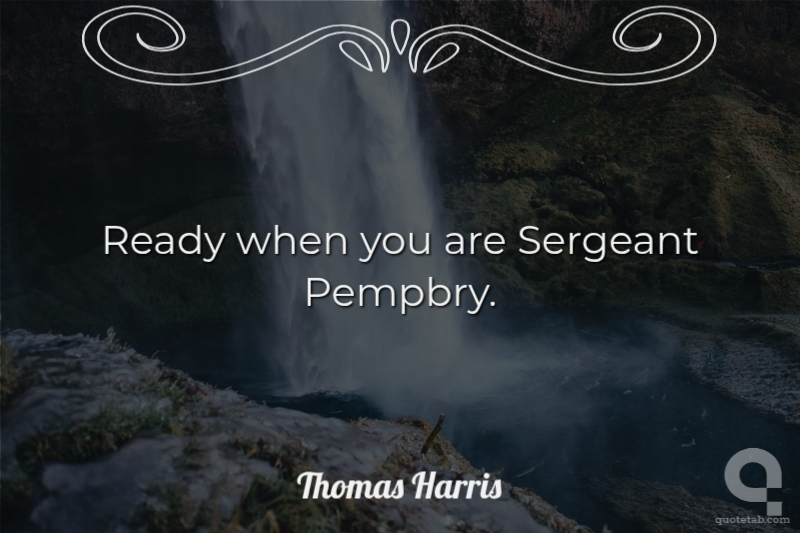 Good-bye Clarice. Will you let me know if ever the lambs stop screaming?" "Yes." Pembry was taking her arm. It was go or fight him. "Yes," she said. "I'll tell you." "Do you promise?""Yes.