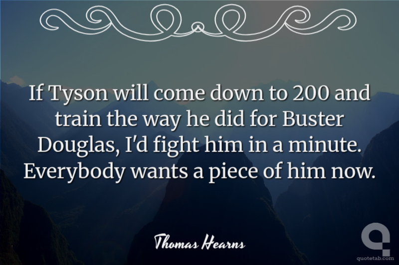 If Tyson will come down to 200 and train the way he did for Buster Douglas, I'd fight him in a minute. Everybody wants a piece of him now.