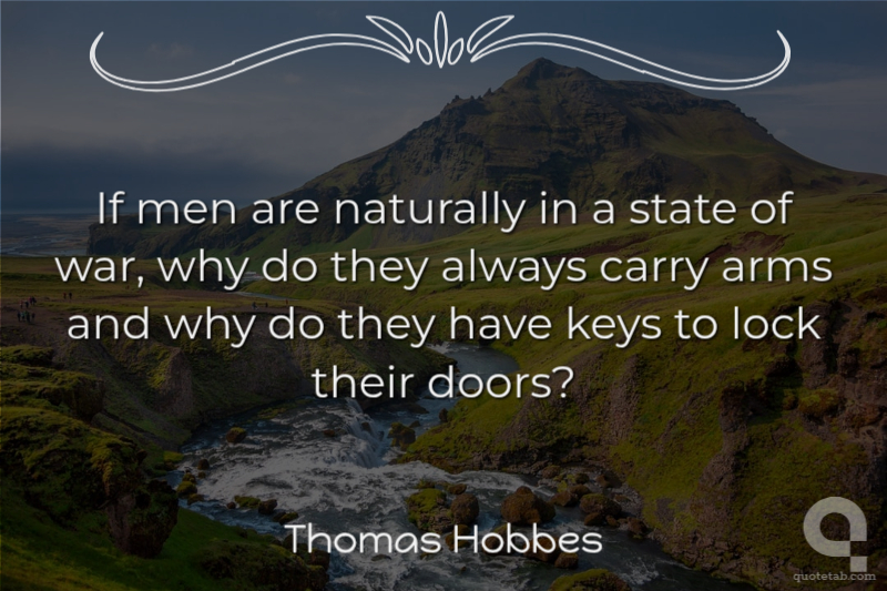 If men are naturally in a state of war, why do they always carry arms and why do they have keys to lock their doors?