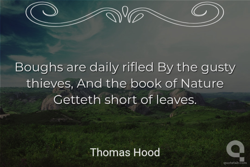 Boughs are daily rifled By the gusty thieves, And the book of Nature Getteth short of leaves.