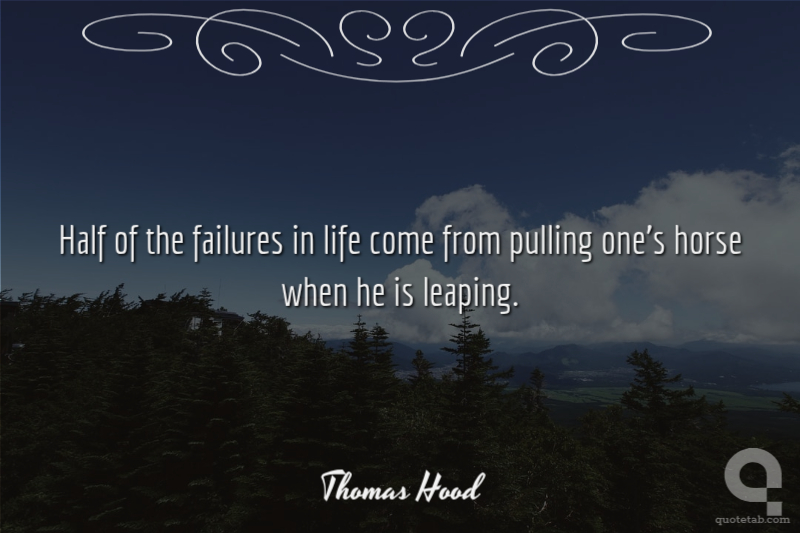 Half of the failures in life come from pulling one's horse when he is leaping.