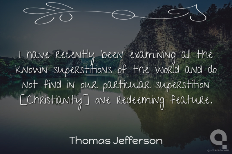 I have recently been examining all the known superstitions of the world and do not find in our particular superstition [Christianity] one redeeming feature.