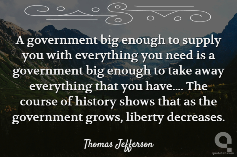 A government big enough to supply you with everything you need is a government big enough to take away everything that you have.... The course of history shows that as the government grows, liberty decreases.