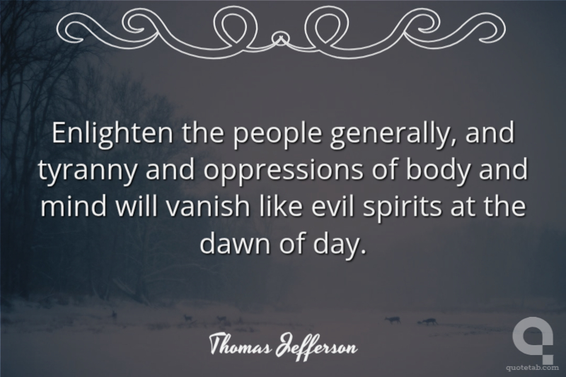 Enlighten the people generally, and tyranny and oppressions of body and mind will vanish like evil spirits at the dawn of day.