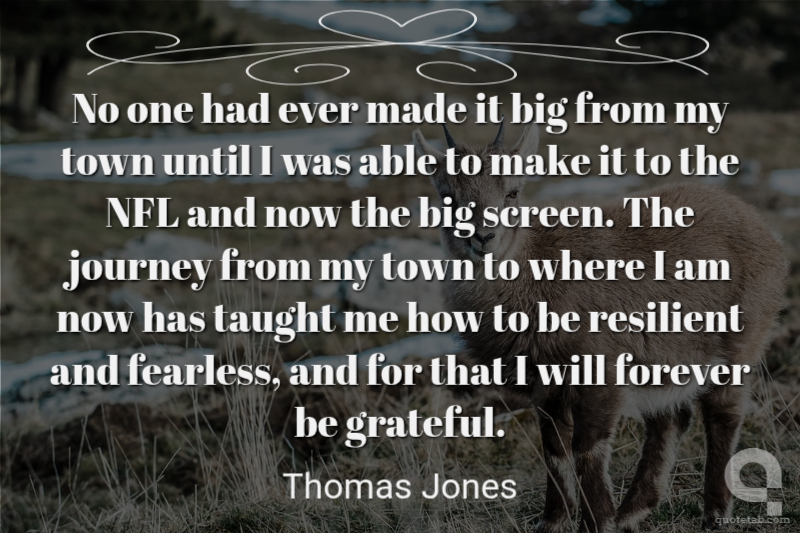 No one had ever made it big from my town until I was able to make it to the NFL and now the big screen. The journey from my town to where I am now has taught me how to be resilient and fearless, and for that I will forever be grateful.