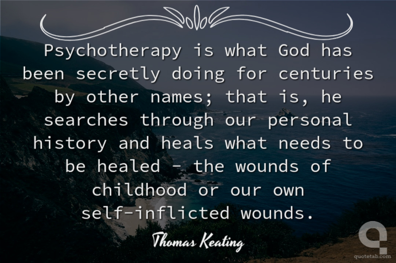 Psychotherapy is what God has been secretly doing for centuries by other names; that is, he searches through our personal history and heals what needs to be healed - the wounds of childhood or our own self-inflicted wounds.