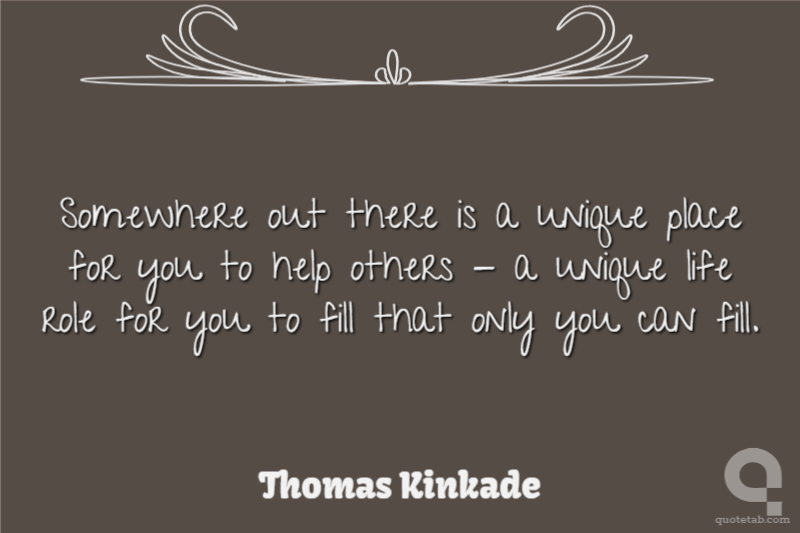 Somewhere out there is a unique place for you to help others - a unique life role for you to fill that only you can fill.