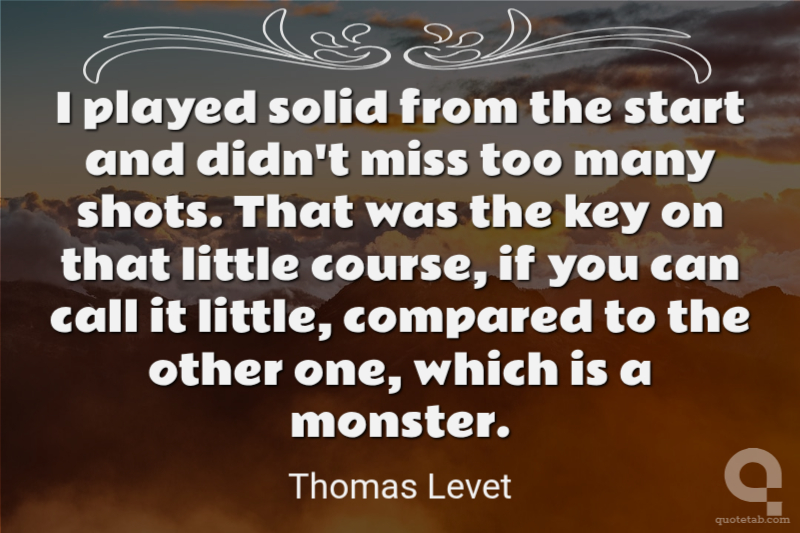 I played solid from the start and didn't miss too many shots. That was the key on that little course, if you can call it little, compared to the other one, which is a monster.