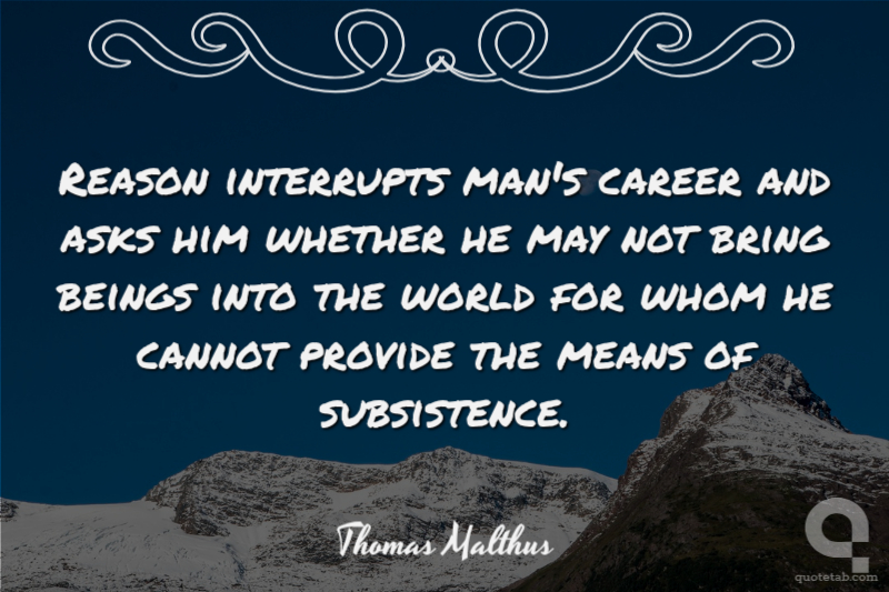 Reason interrupts man's career and asks him whether he may not bring beings into the world for whom he cannot provide the means of subsistence.