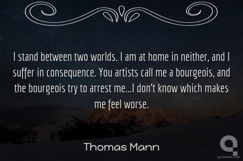 I stand between two worlds. I am at home in neither, and I suffer in consequence. You artists call me a bourgeois, and the bourgeois try to arrest me...I don't know which makes me feel worse.