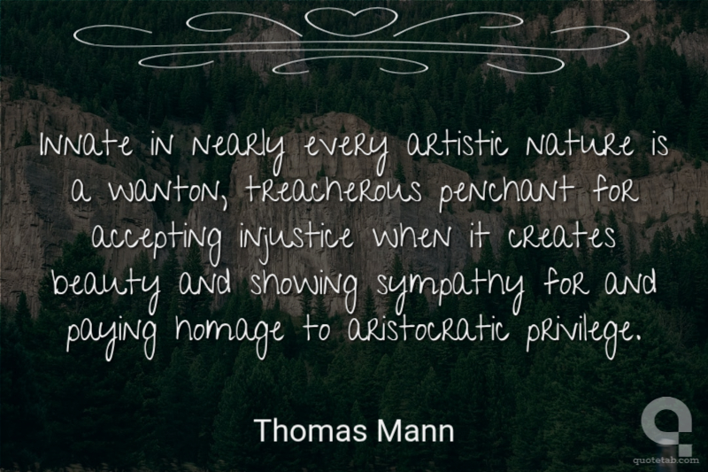 Innate in nearly every artistic nature is a wanton, treacherous penchant for accepting injustice when it creates beauty and showing sympathy for and paying homage to aristocratic privilege.